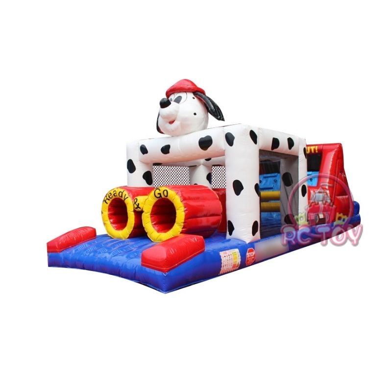 These are long, linear inflatables where participants race through tunnels, pop-ups, and slides. They are highly popular for school events and team-building activities.